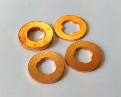 Fabricamos 4 medidas de arandelas dentadas en cobre recocido para inyectores de diesel:7x8x16x2.5mm con 3 dientes.7x9x15x1mm con 3 dientes.7x8x15x1.5mm con 3 o con 4 dientes. Consultenos por cantidad y medida.